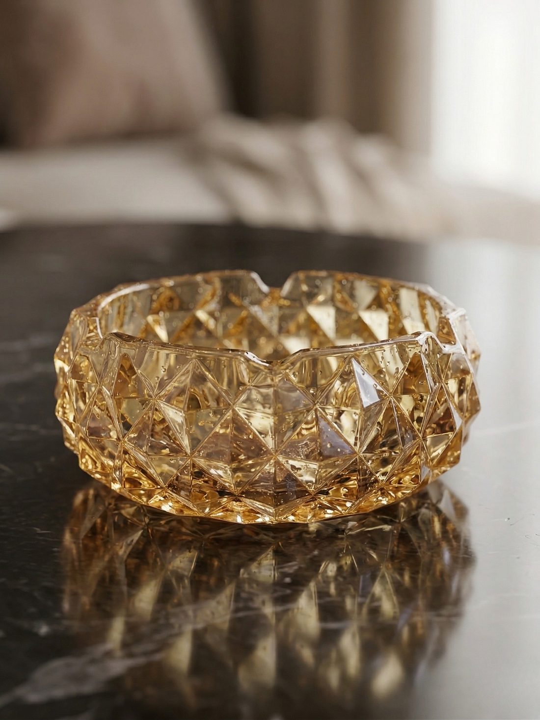A bold and elegantly designed Smoked Black Ashtray featuring a deep-cut geometric faceted pattern—perfect for...
