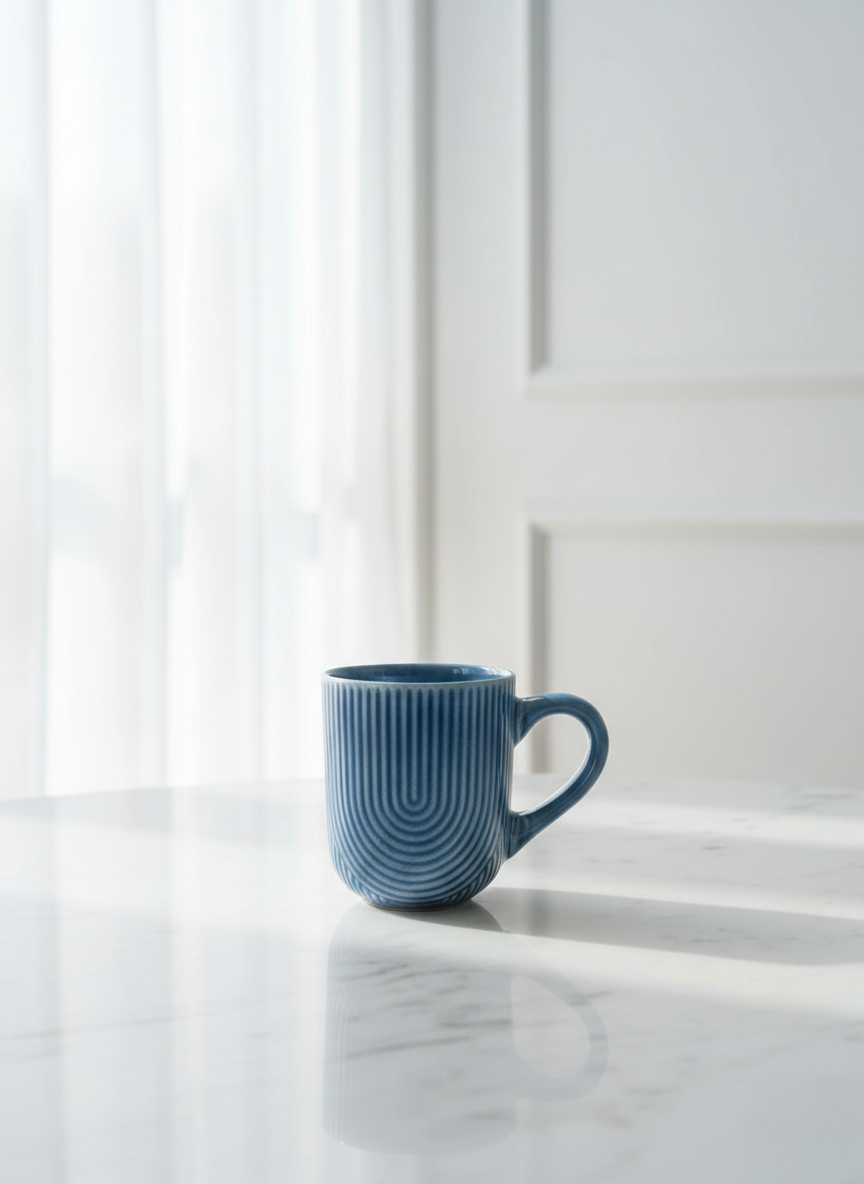 A pottery mug inspired by deep night-blue tones, designed to bring warmth and character to your...
