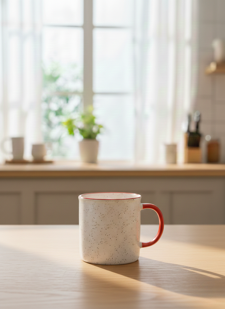 A pottery mug with soft, earthy tones and a calm, minimalist character, designed to elevate...
