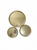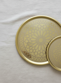 صينية تقديم أنيقة مستوحاة من الهندسة العربية الكلاسيكية، مُنتهية بلون ذهبي راقٍ يضيف لمسة فاخرة لأي مكان. النقش المعقد والحافة الناعمة يجعلها زخرفية وعملية لتقديم الطعام أو العرض.