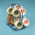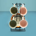 Design: Striped textured finish with a pastel matte glaze, speckled accents, and a durable metal stand for organized display.