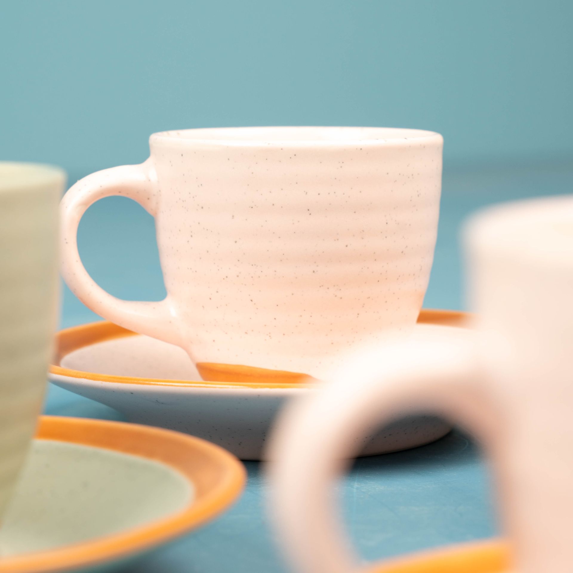 Bring charm and character to your coffee corner with the ClayTon Striped Coffee Set — a beautifully crafted stoneware collection designed to elevate your daily coffee moments. With soft pastel tones, striped texture, and speckled detailing, this set blends modern style with warm, cozy appeal.