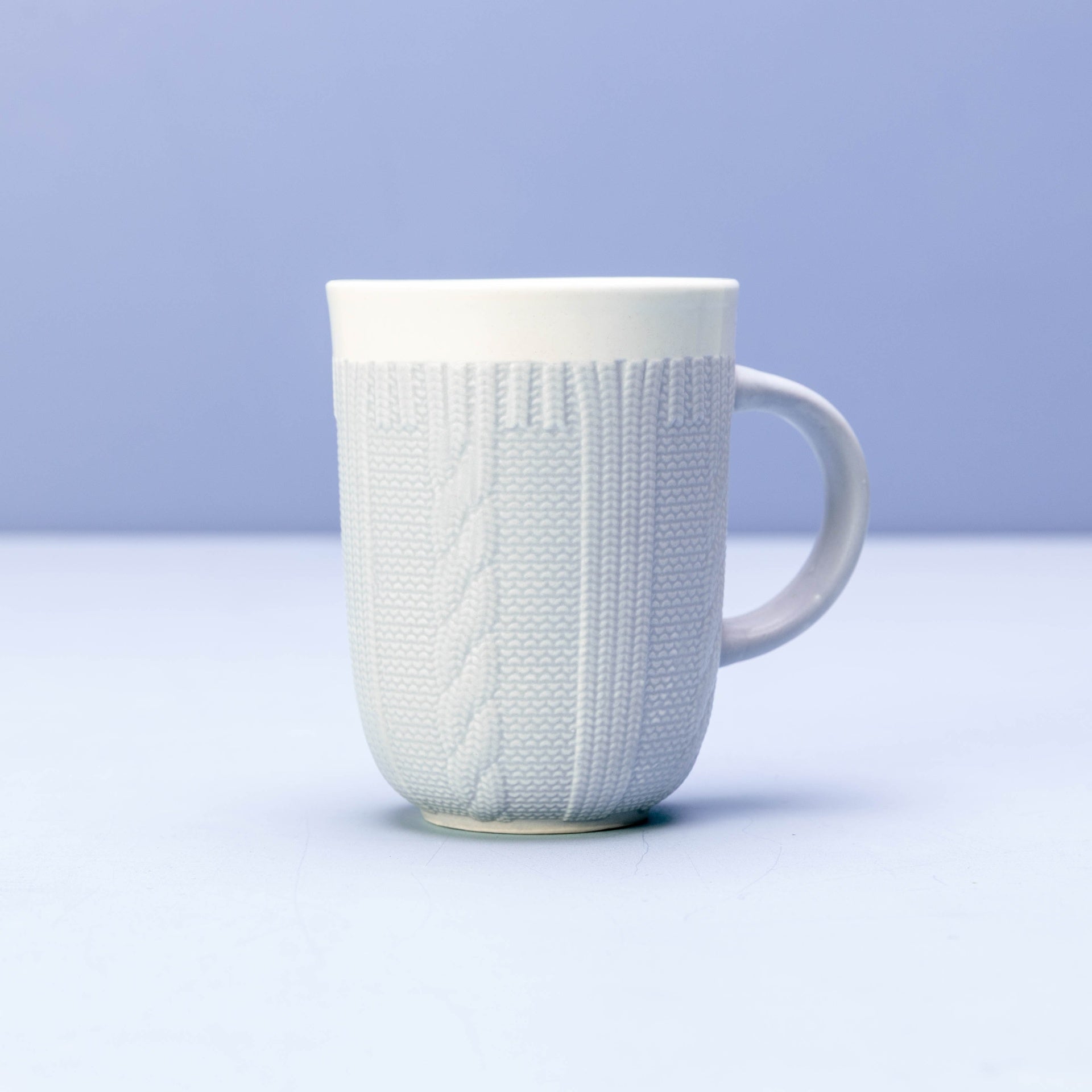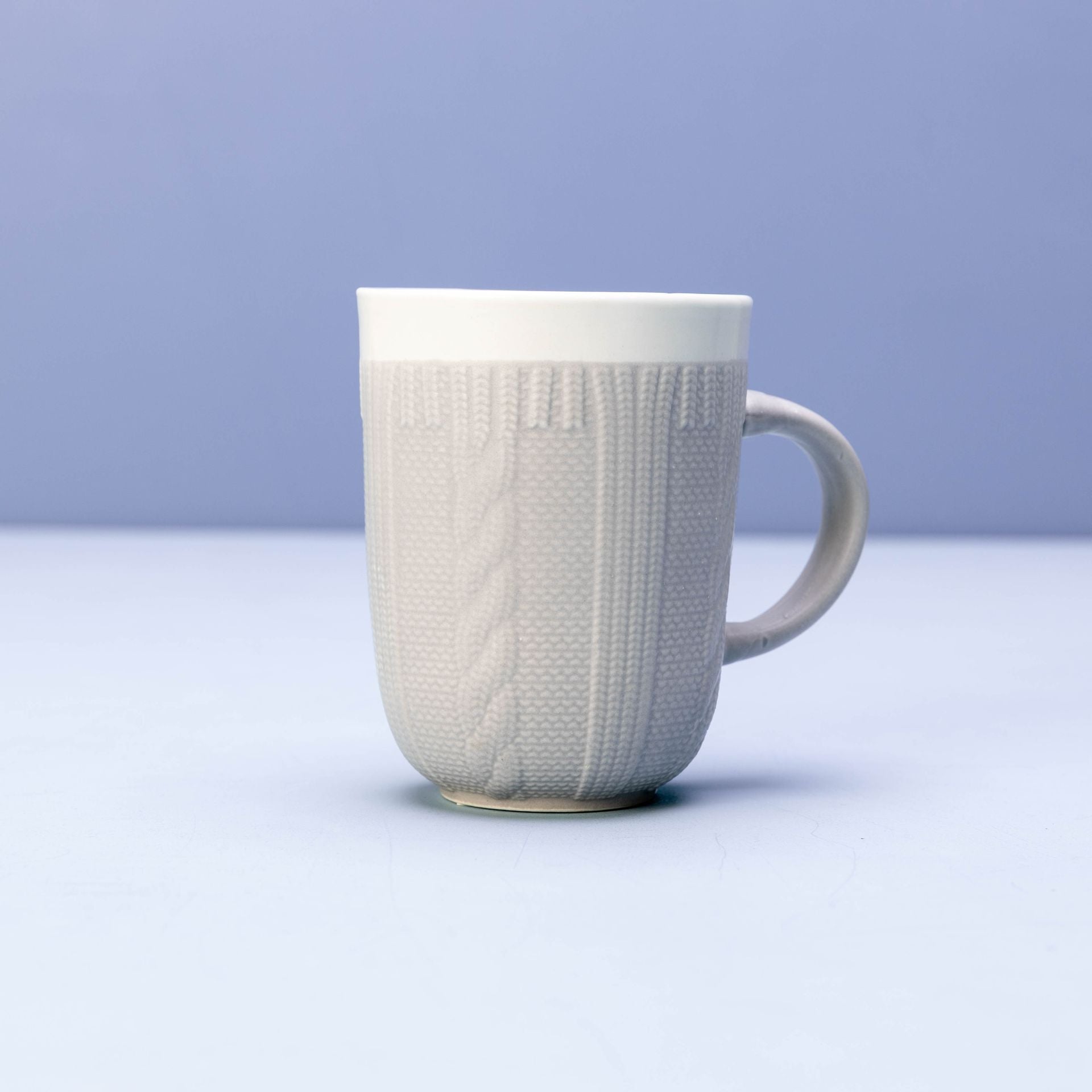 تصميم دافئ ومُحكم: يتميز كوب Cozy Sip بنسيج جذاب يشبه الحياكة يلتف حول الكوب، مما يمنحك راحة سترة مع كل رشفة.