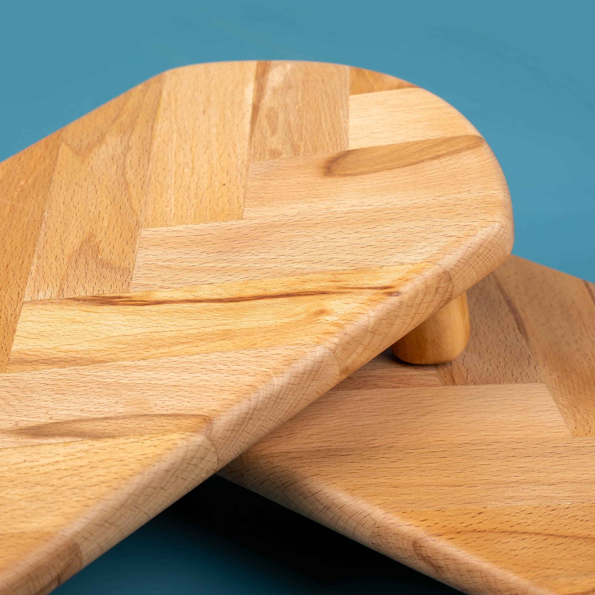 صينية خشبية مصنوعة يدويًا بتصميم نظيف وبسيط يبرز جمال الخشب الطبيعي. مصممة لرفع مستوى تقديم الأطعمة والتنسيق مع أناقة بسيطة.