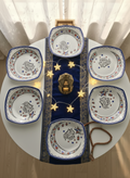 A festive square bowl inspired by Ramadan nights, featuring crescent moons, lanterns, and star details. Designed to add warmth and tradition to your table while serving with elegance and charm.