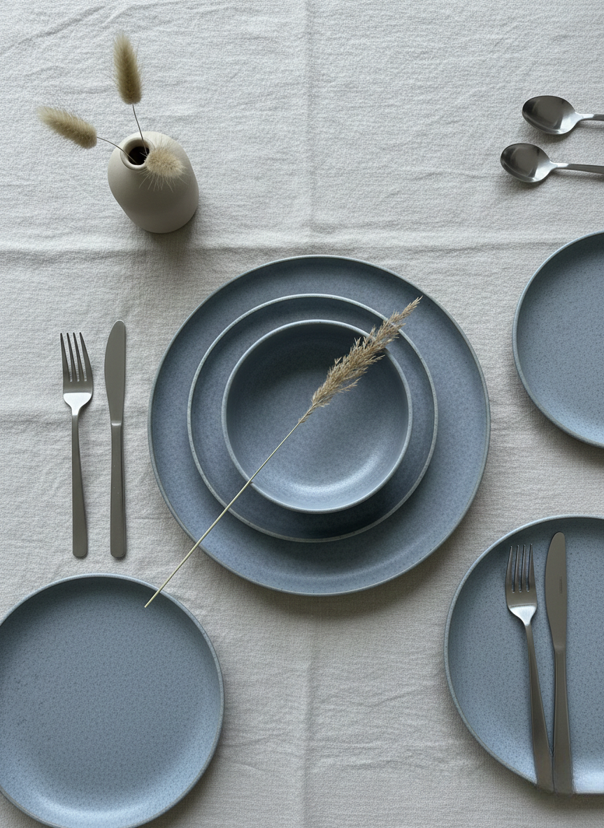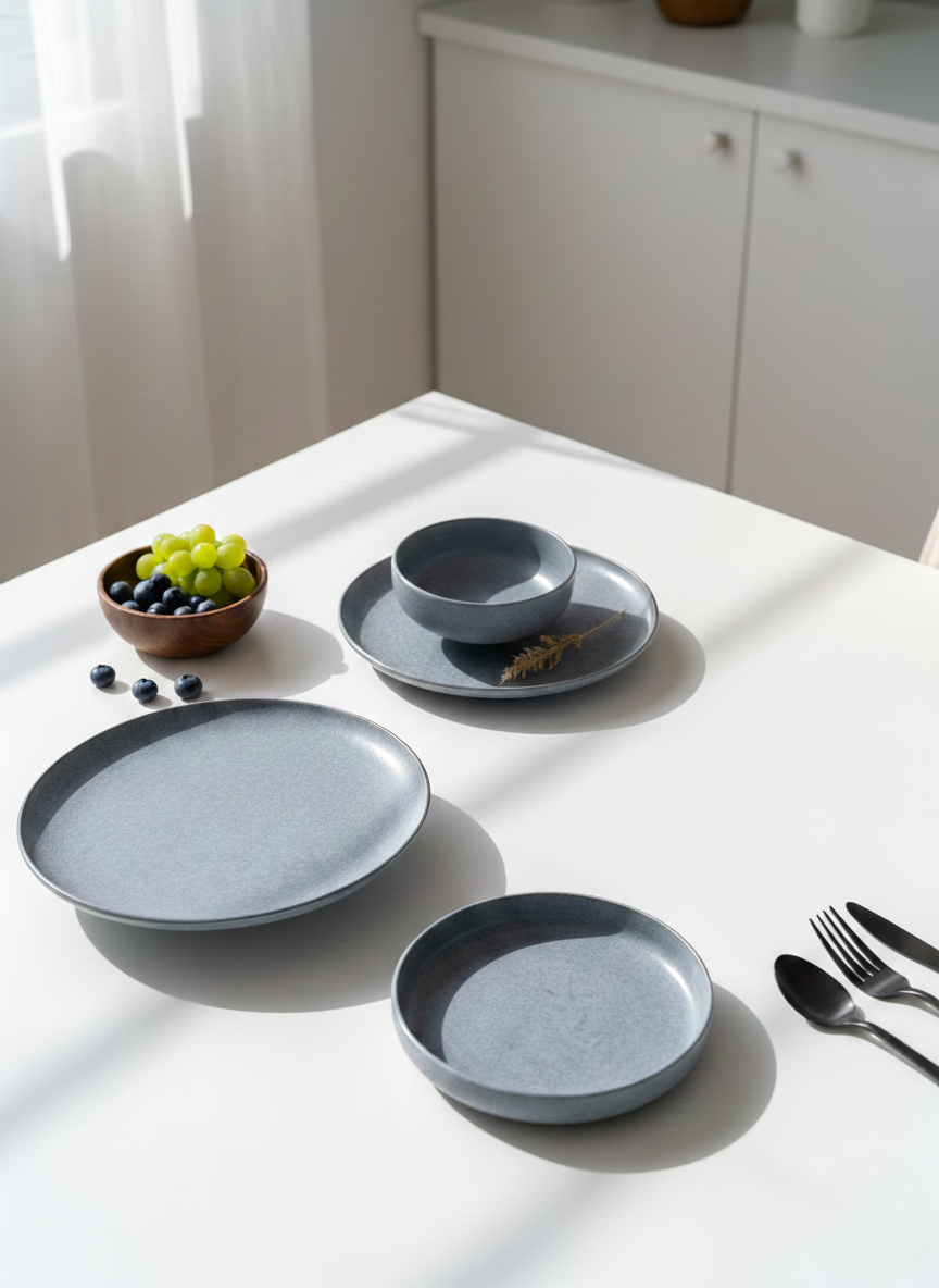 طقم عشاء حديث وبسيط مصمم لرفع مستوى تناول الطعام اليومي بإحساس هادئ وعصري. يخلق لونه الرمادي الناعم وتشطيبه الراقي إعداد طاولة خالدة مناسب للوجبات العادية والمناسبات الخاصة.