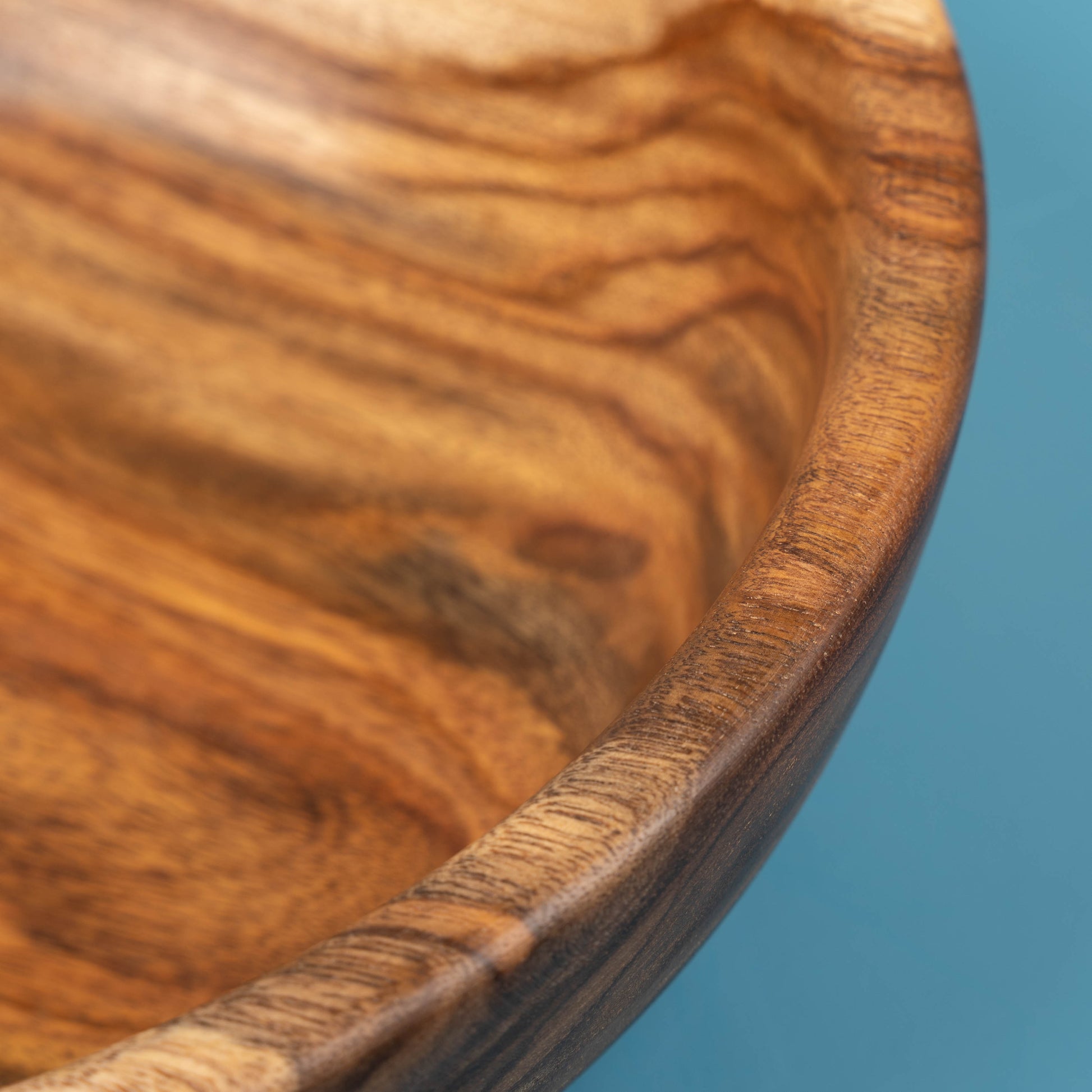 A generously sized wooden bowl designed to be both functional and decorative. Its wide, deep form makes it perfect for serving and styling, while the natural wood grain adds warmth to any table.
