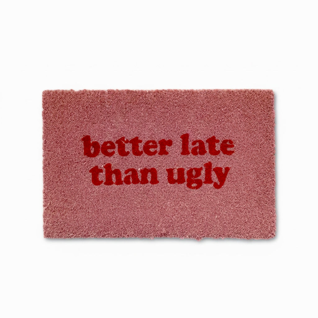 Bold & Playful Statement: Features the witty phrase “Better Late Than Ugly”, adding humor and...