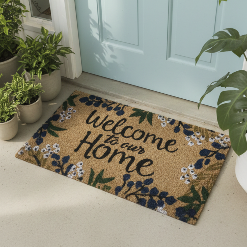 Warm & Inviting Message: Features the phrase “Welcome to Our Home”, creating a friendly and...