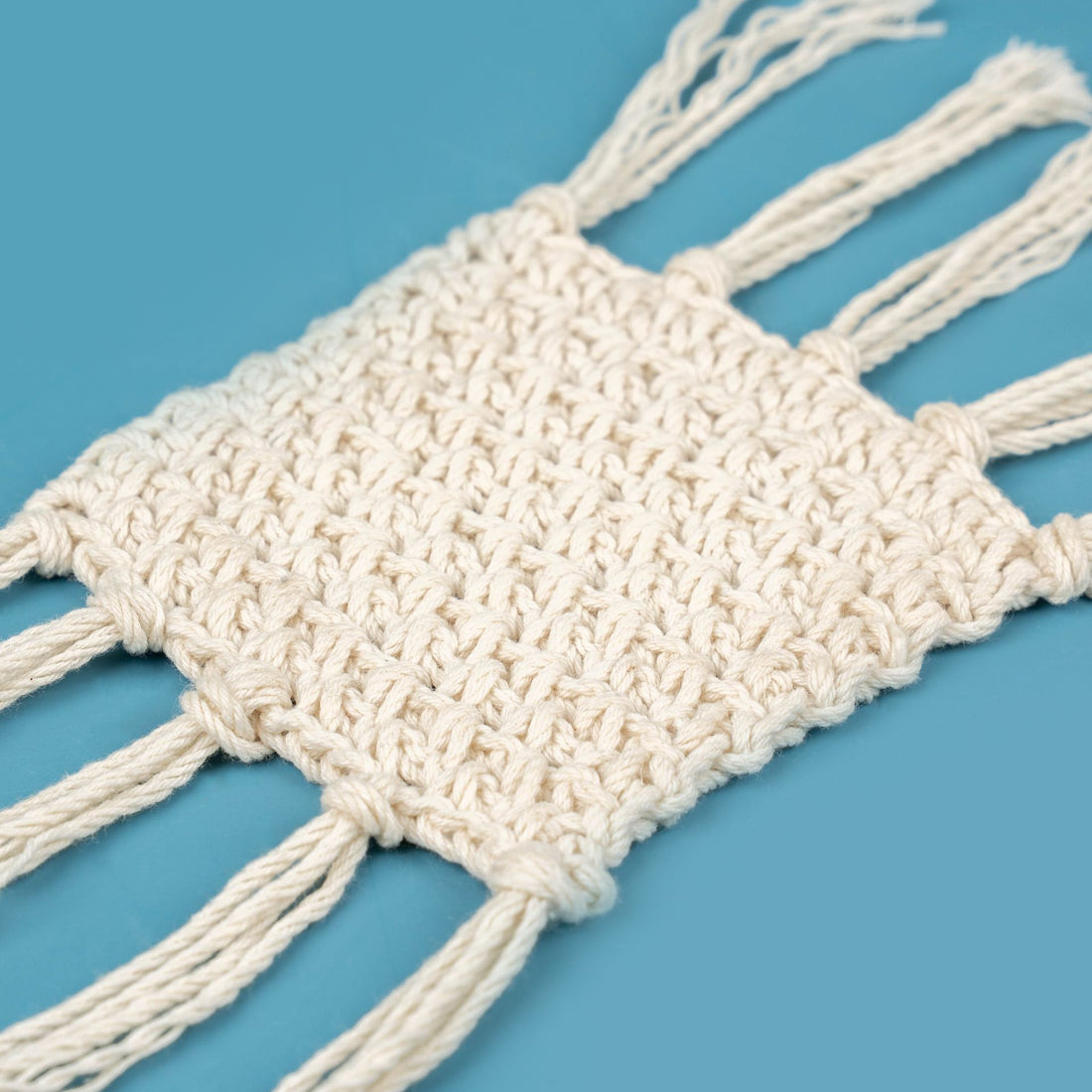 A handcrafted tea coaster made from natural cotton cord, designed to protect surfaces while adding...