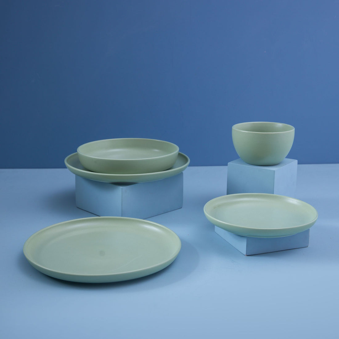 Infused with calming hues of deep green and cool grey, the Aqua Mist Dinner Set...
