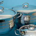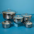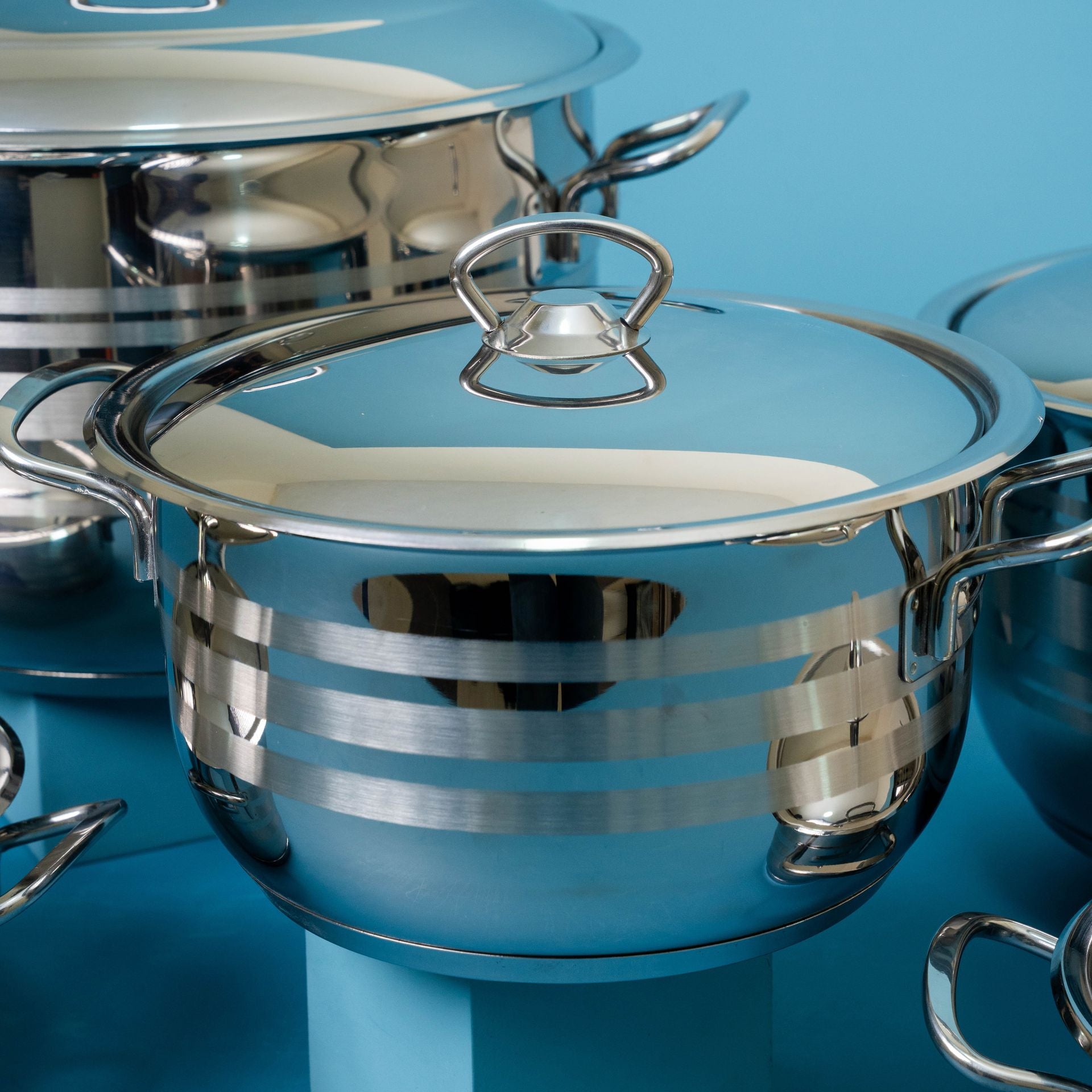Bring timeless elegance and professional performance to your kitchen with the Striped Stainless Steel Cookware Set. Designed with precision and durability in mind, each pot features a sleek mirror finish, distinctive striped detailing, and sturdy steel handles for a modern, polished look.