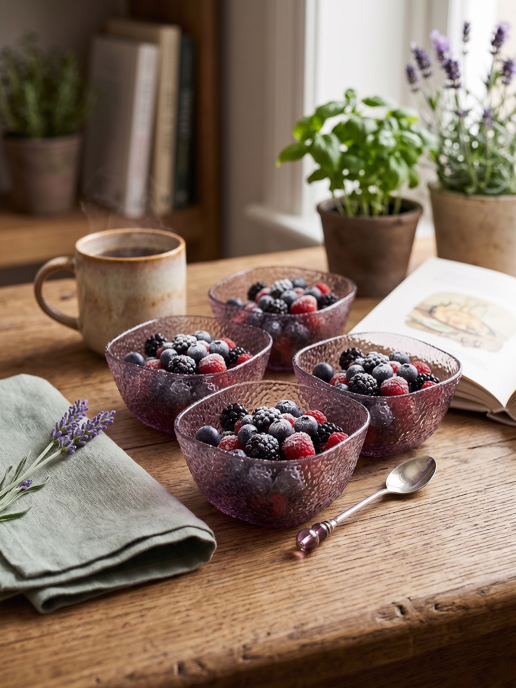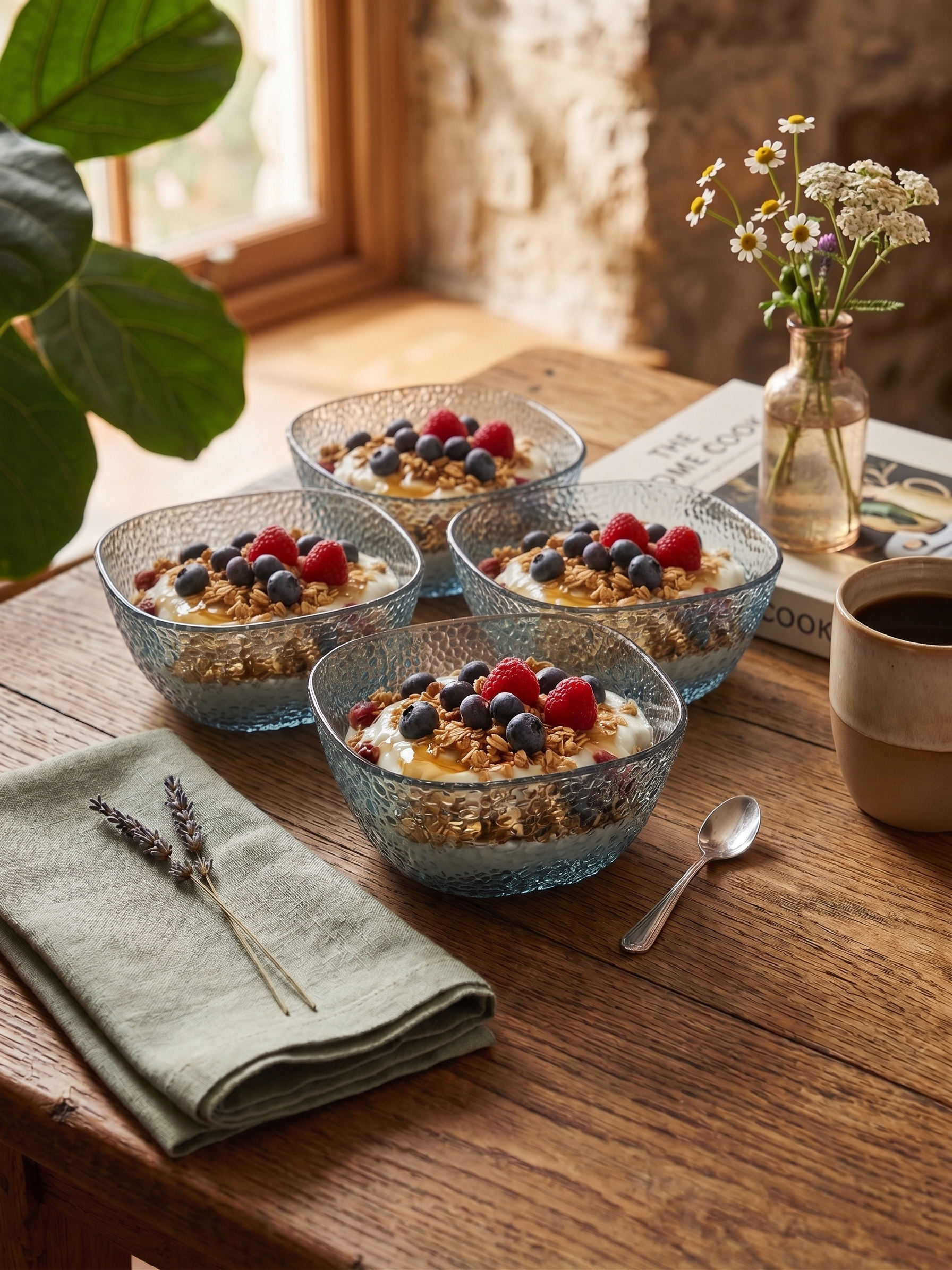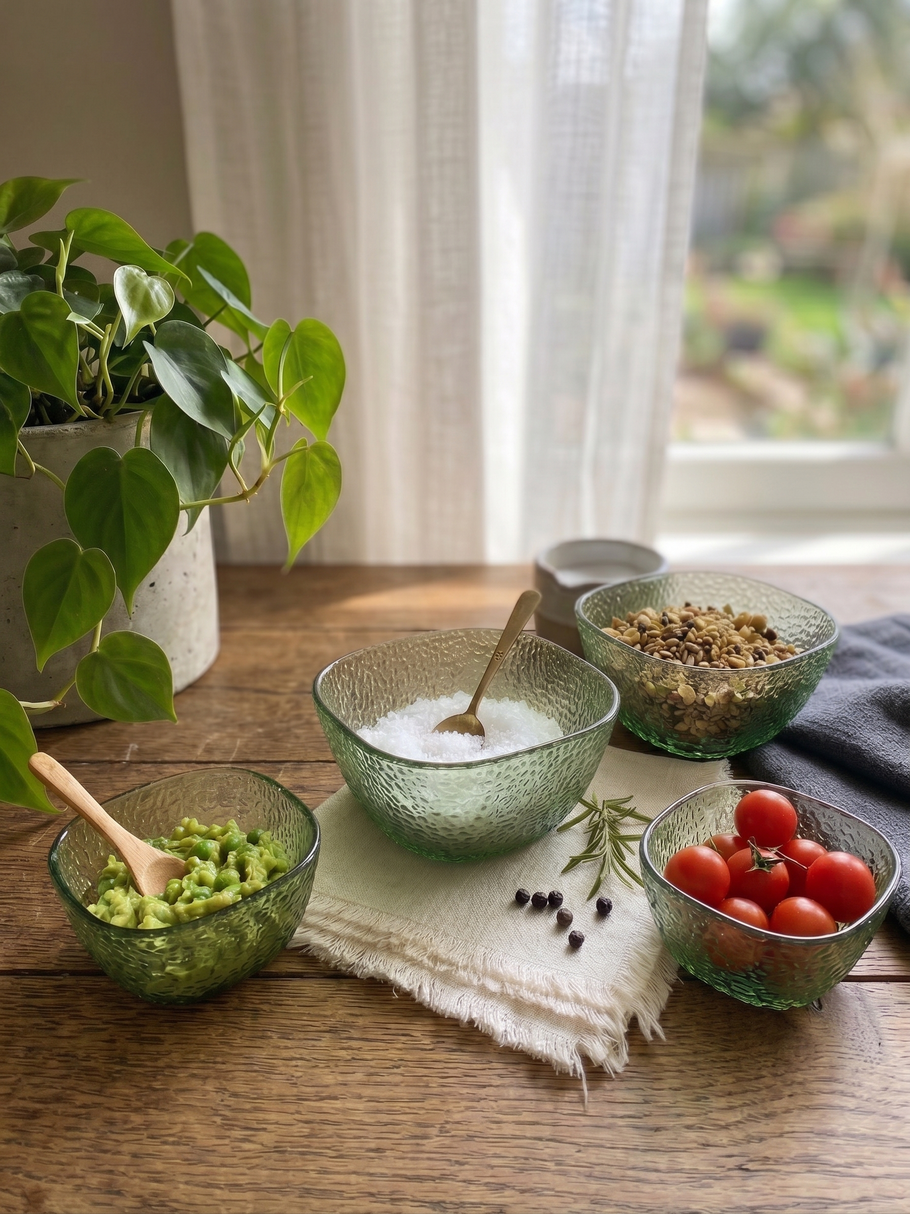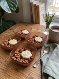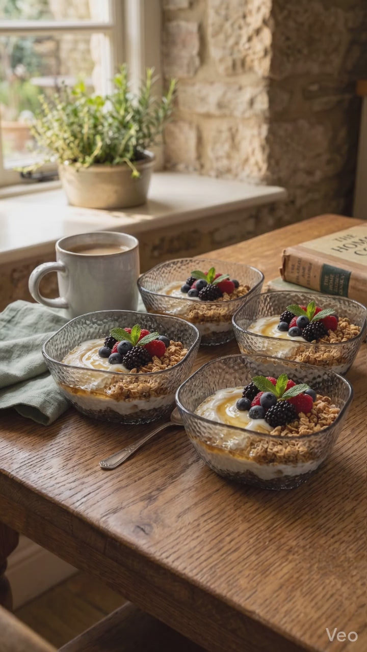The Fern Glass Bowl Set is a delicate and charming addition to your dessert or appetizer service. This set of four 10 cm bowls features an exquisite, embossed fern leaf pattern that wraps around the exterior, catching the light and adding a touch of botanical elegance to your table.