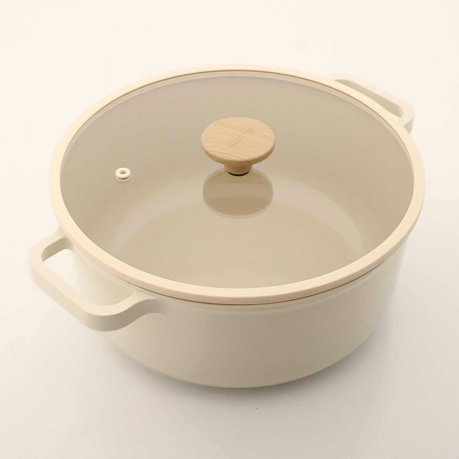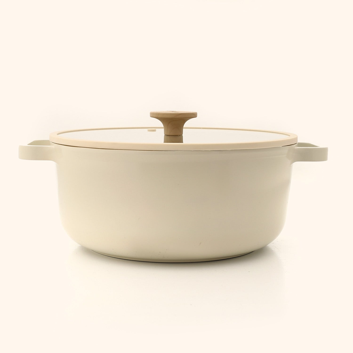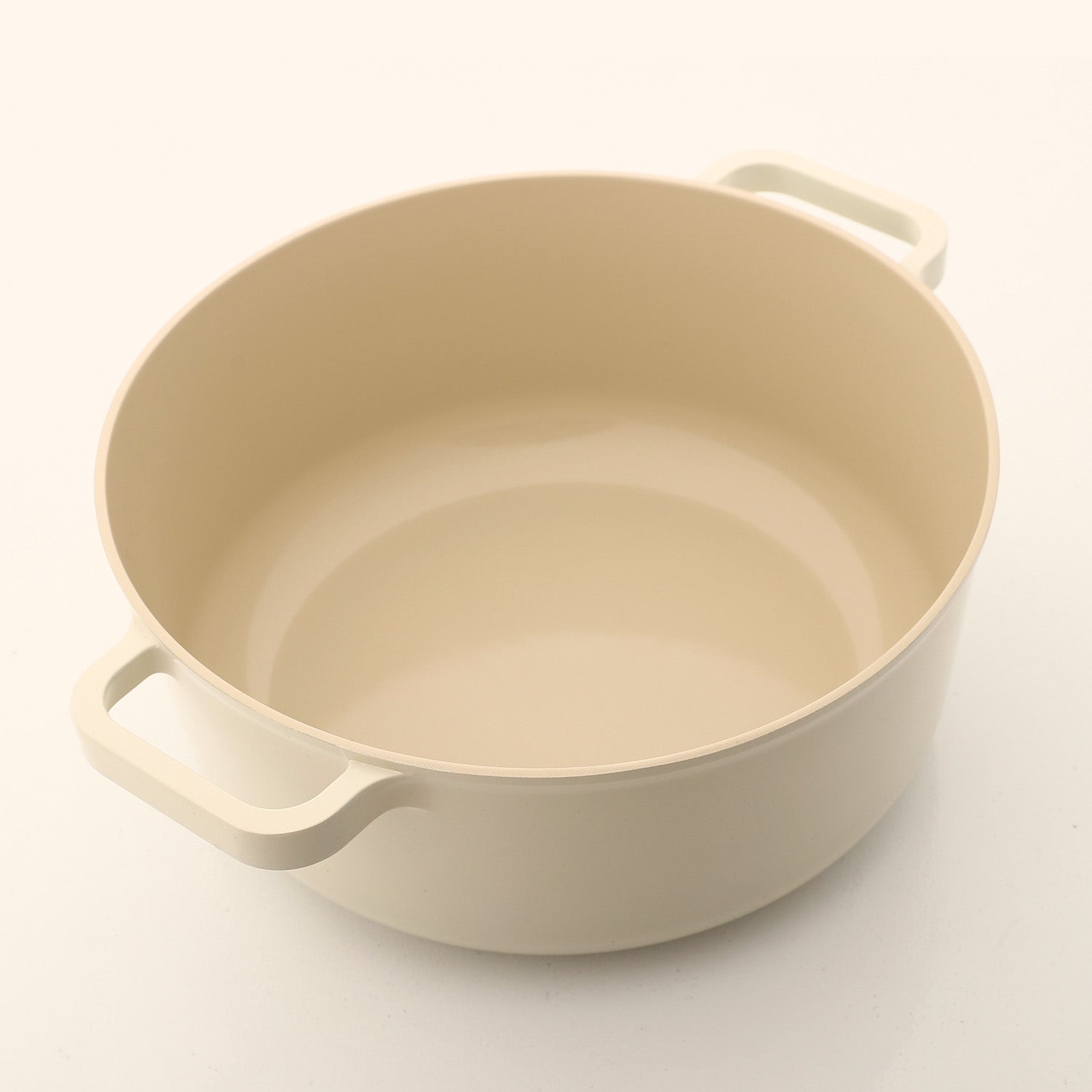Design: Minimalist rounded silhouette in a soft beige finish with ergonomic side handles for comfortable handling.