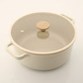 Material: High-quality aluminum body with ceramic non-stick coating and a heat-resistant glass lid with wooden knob