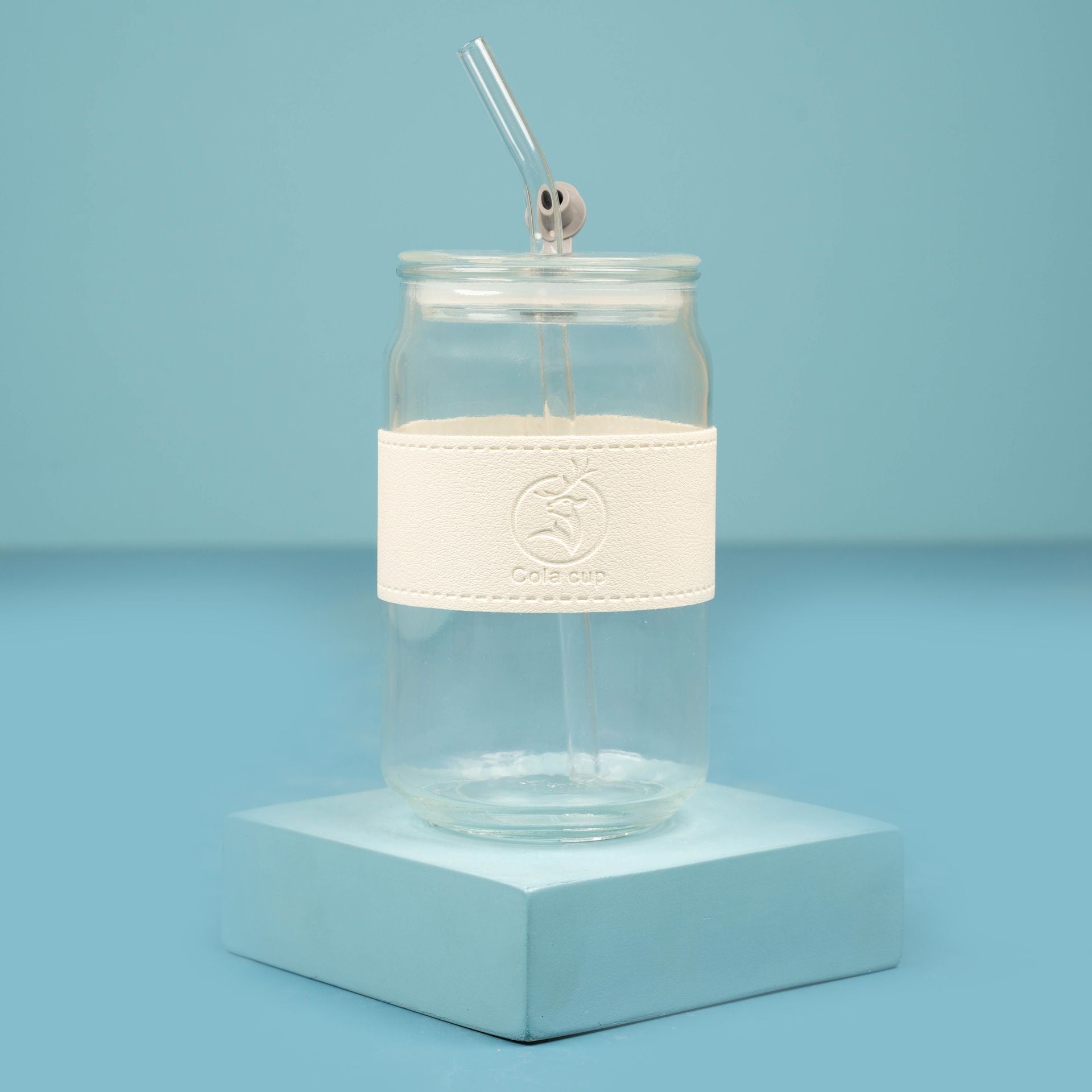 Material: High-quality glass with a faux-leather sleeve & reusable glass straw