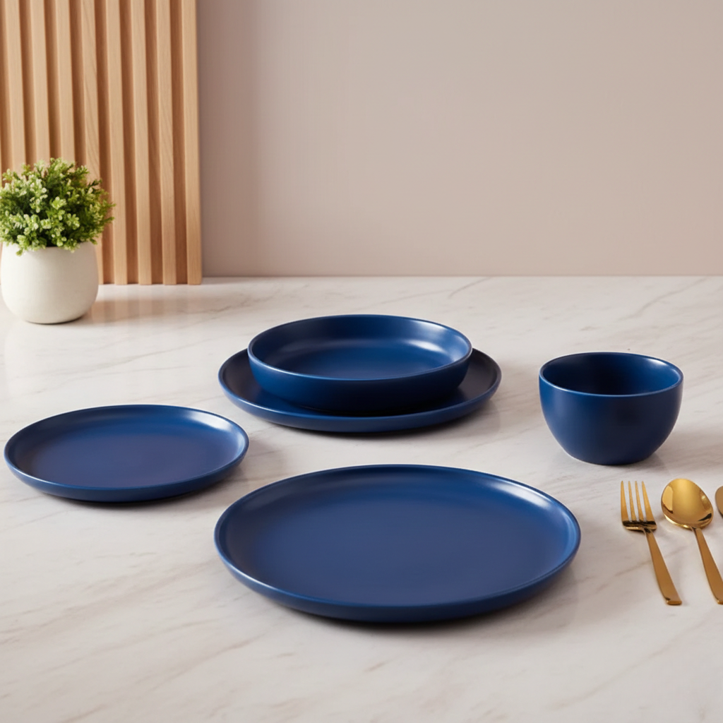 Dive into modern elegance with the Deep Sea Dinner Set, featuring a rich oceanic blue finish that brings calm sophistication to your dining table. Perfect for both everyday meals and stylish dinner gatherings.