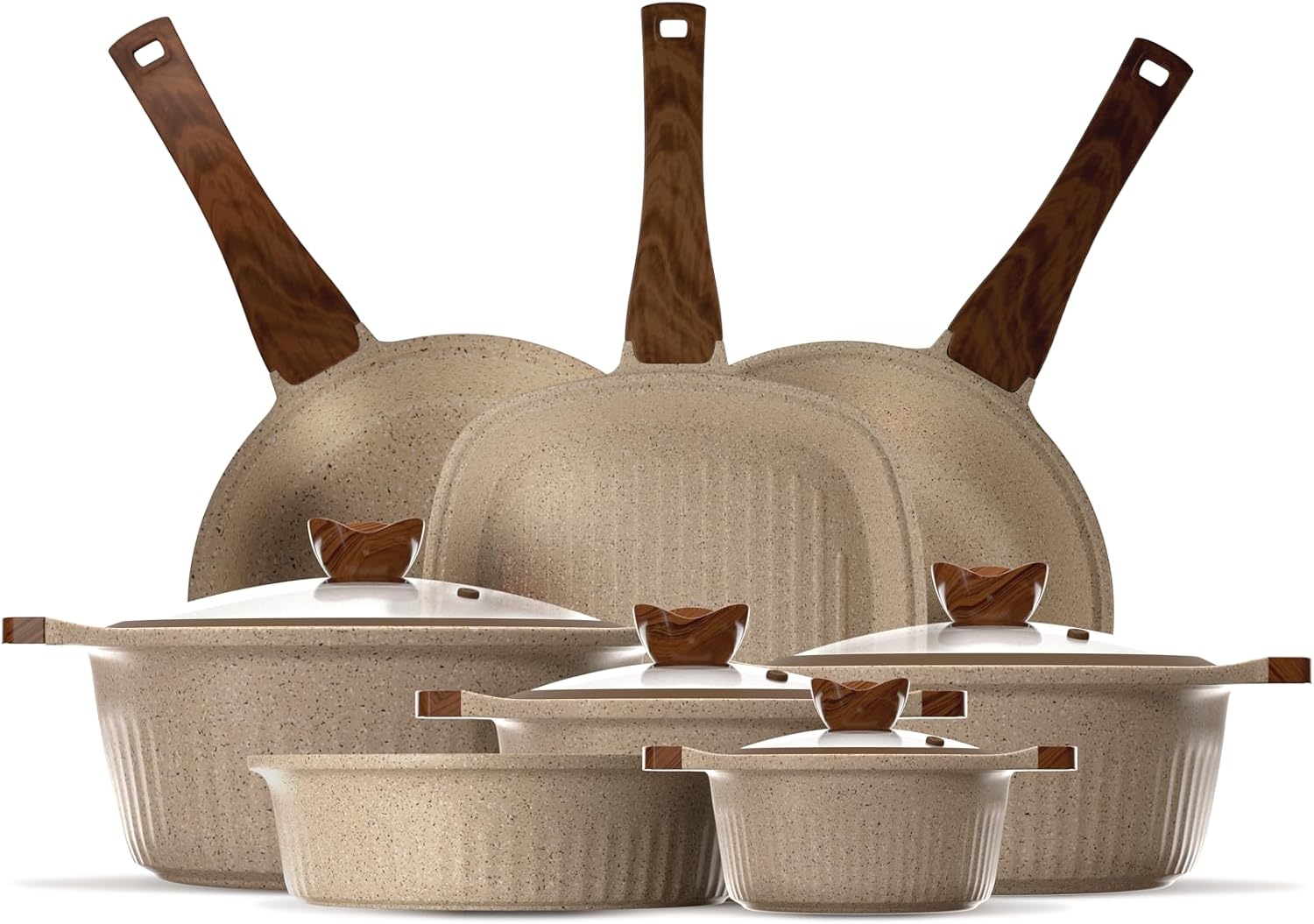 Elevate your kitchen with the Die-Cast Granite Cookware Set, crafted for exceptional durability, premium design, and effortless cooking performance. Made from thick die-cast granite, this collection delivers superior heat retention, non-stick excellence, and timeless elegance — perfect for modern kitchens and everyday use.