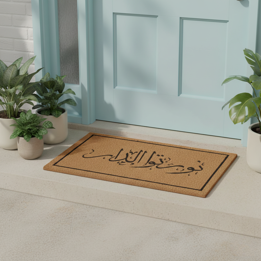 Traditional Arabic Welcome: Features the elegant Arabic phrase “Nawwarto El Dar” (نورتوا الدار), expressing a warm and heartfelt welcome to guests.