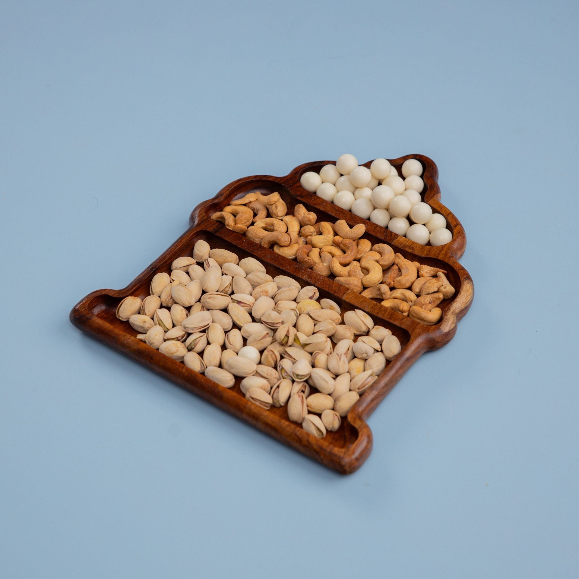 Ideal Size: Measures 28x22 cm, offering three compartments for serving nuts, snacks, or sweets.
