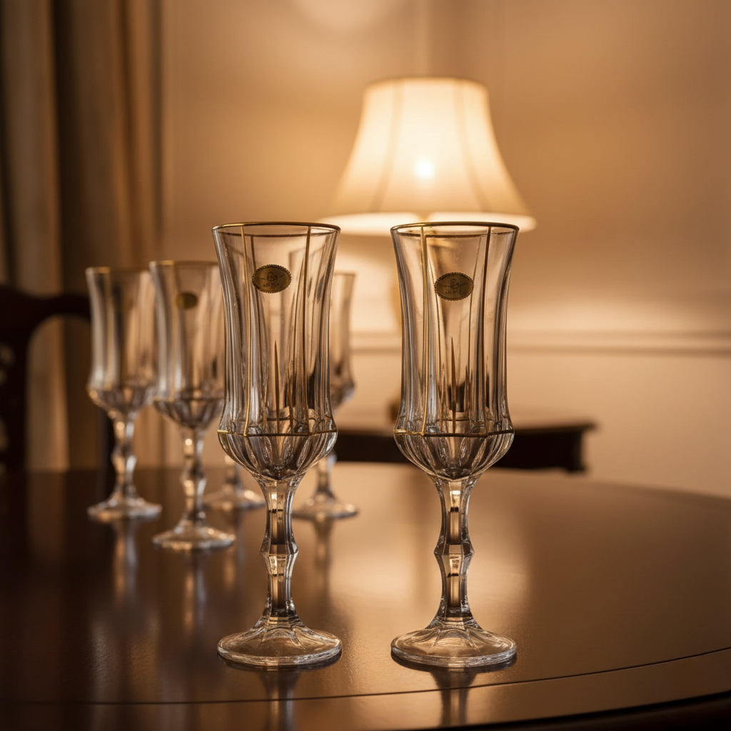 Design: Tall, fluted silhouette with refined detailing and an elegant stem — perfect for sophisticated occasions