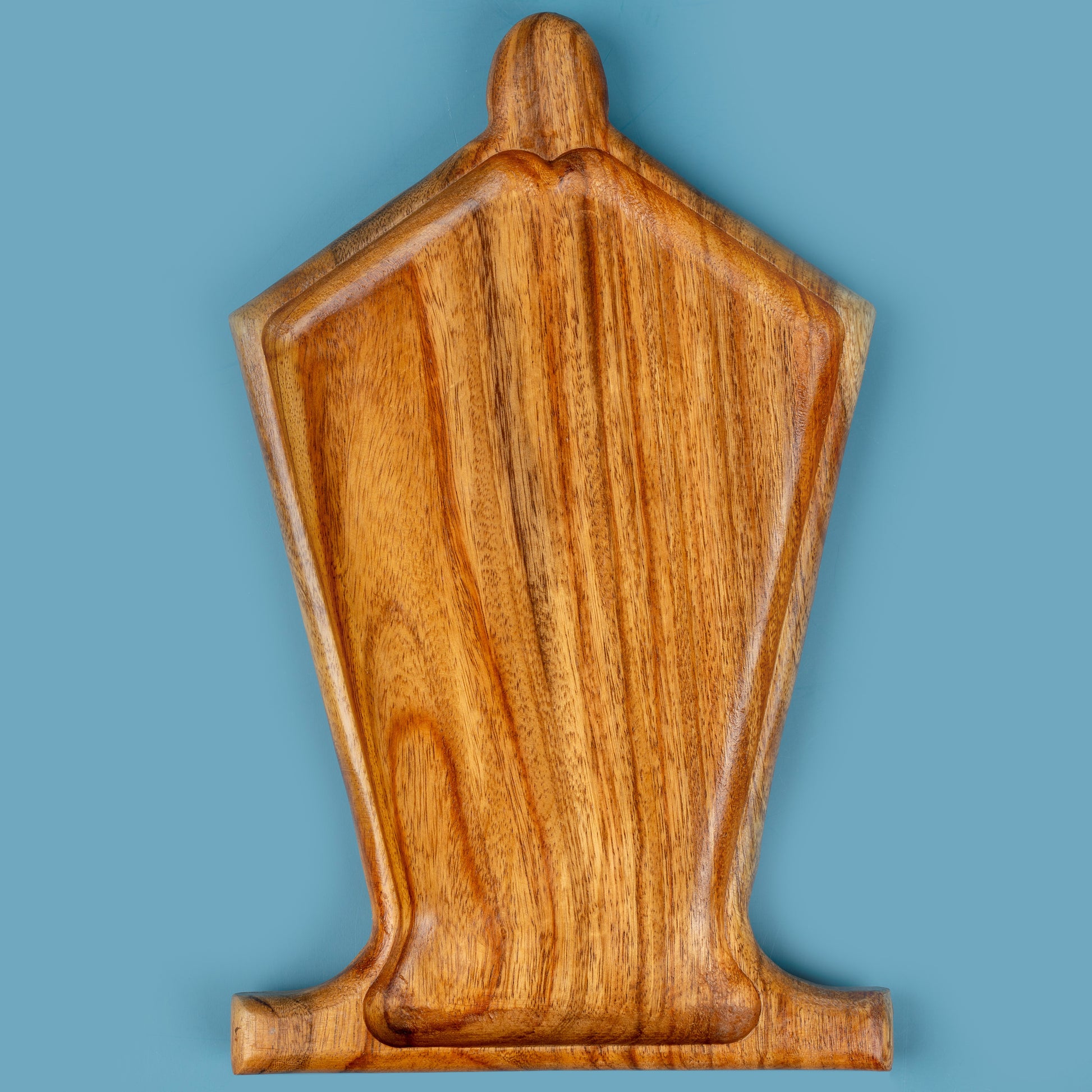 A handcrafted wooden lantern with a sculpted, flowing silhouette that highlights the natural beauty of the wood grain. Designed as a decorative tray or lantern base, it adds a warm, organic touch to both modern and rustic interiors.
