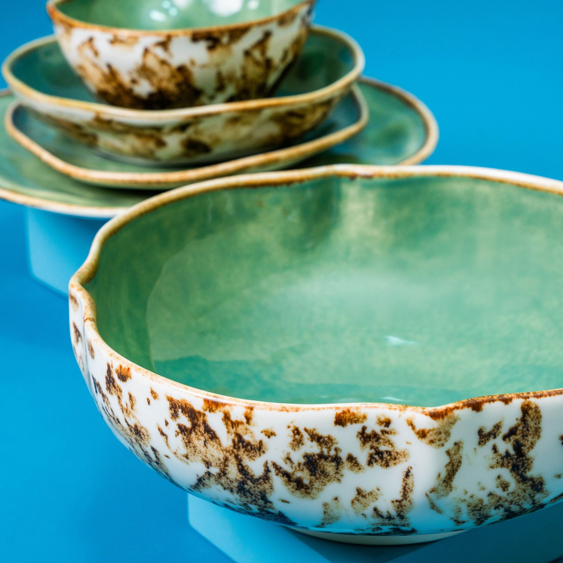 Experience the artistry of modern craftsmanship with the Premium Organic Glow Salad Bowl — where elegance meets nature-inspired design. Featuring an organic wavy form, this bowl blends a soothing mint-green interior glaze with a textured white and brown exterior, creating a harmonious balance of color and shape. Perfect for serving fresh salads, pasta, or fruits with refined style.