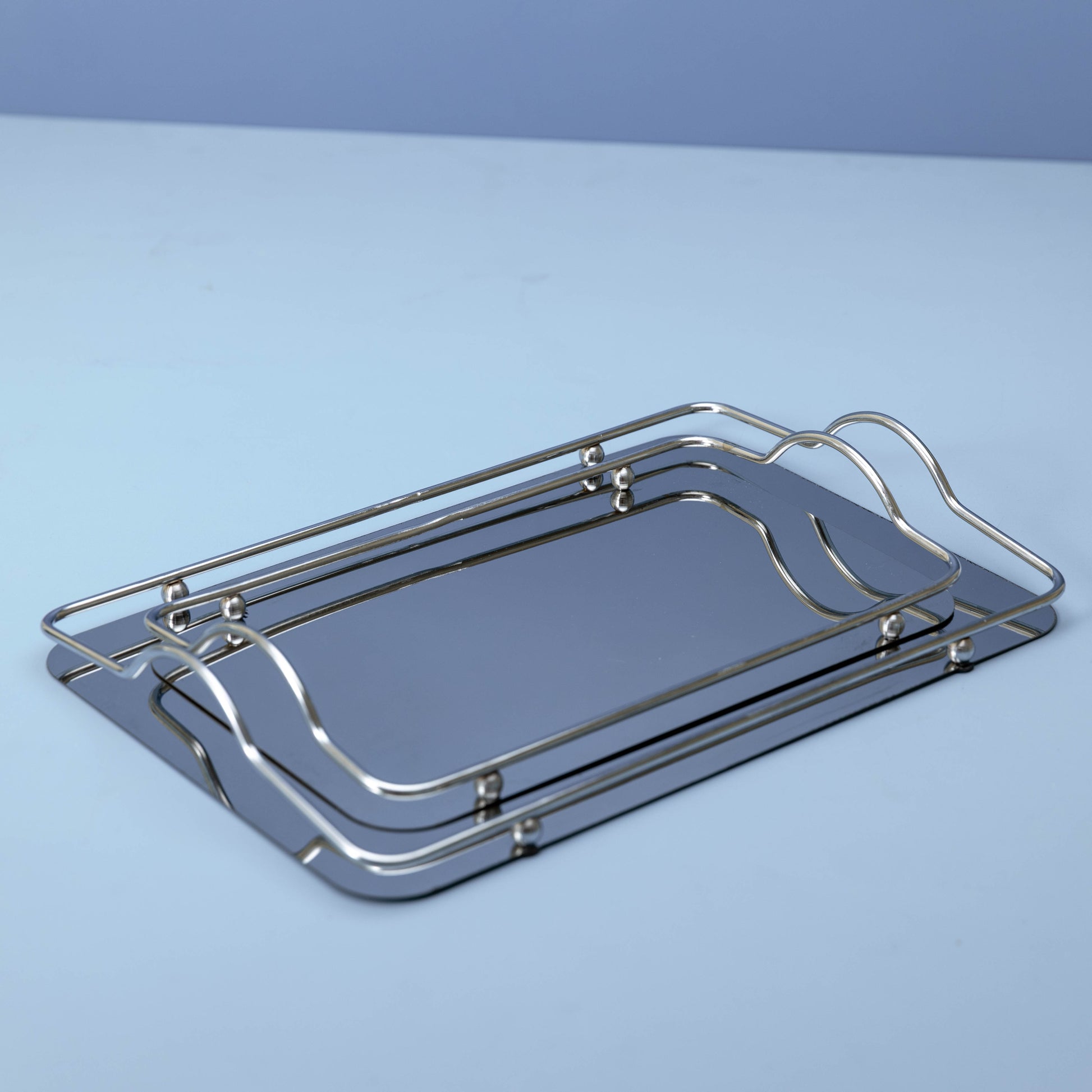 The Mirrored Stainless Steel Tray Set is a stylish and versatile addition to any home, perfect for serving and display.