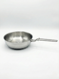 Design: Classic rounded pan with a polished stainless steel finish and a long, sturdy handle for safe and comfortable control.