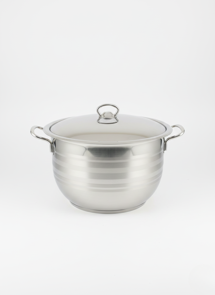 Cook with confidence and style using the Stainless Steel Striped Pot. Crafted from high-quality stainless steel, it ensures even heat distribution and long-lasting shine. Its elegant striped finish adds a modern touch to your kitchen, while sturdy side handles make it easy to lift and serve. Perfect for soups, stews, and daily cooking.