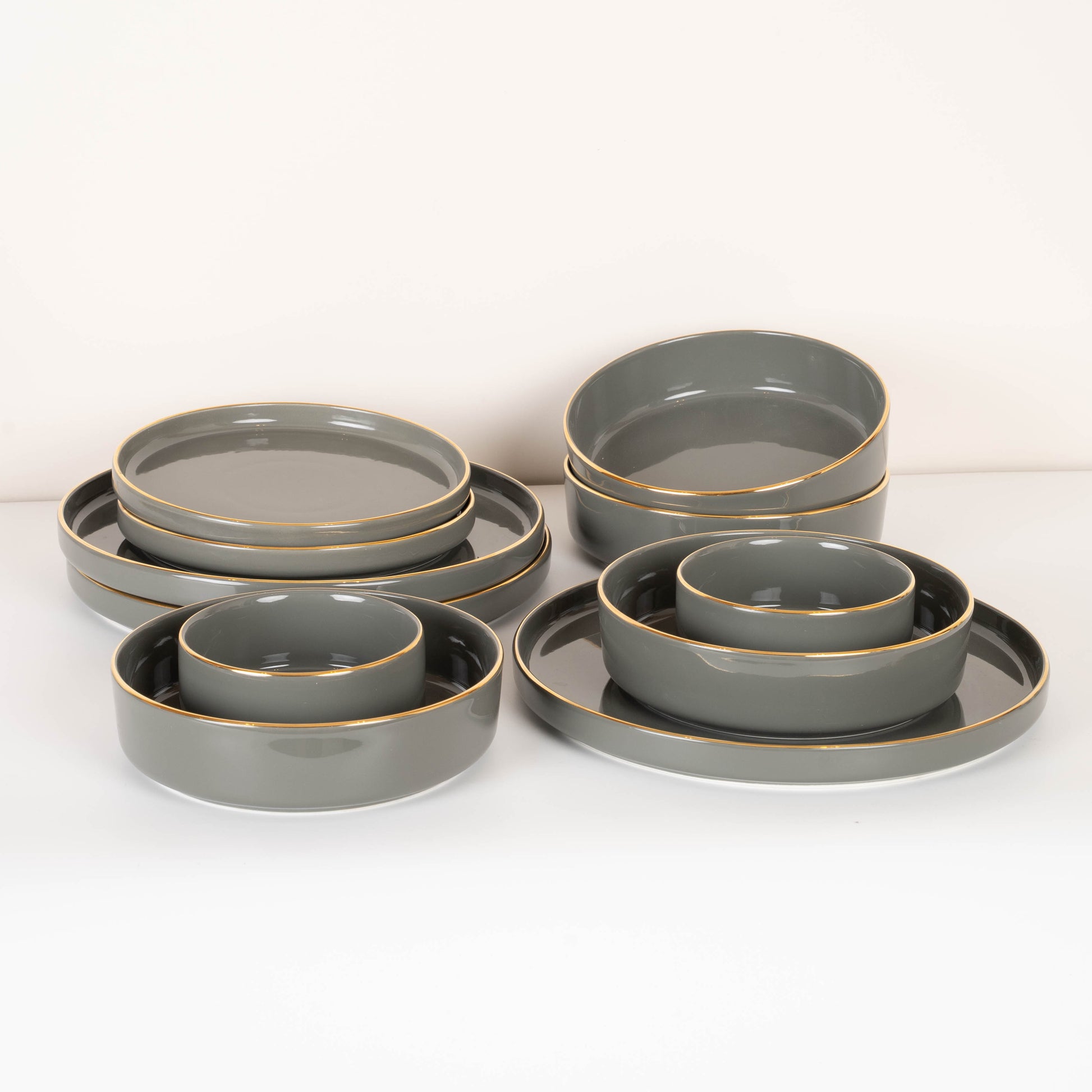 Design: The Lunar Golden Dinner Set draws inspiration from the soft glow of the moon and the richness of golden dusk. Its charcoal-grey base contrasts beautifully with the refined golden border, creating a balance between understated elegance and luxurious charm — perfect for both everyday indulgence and festive gatherings.