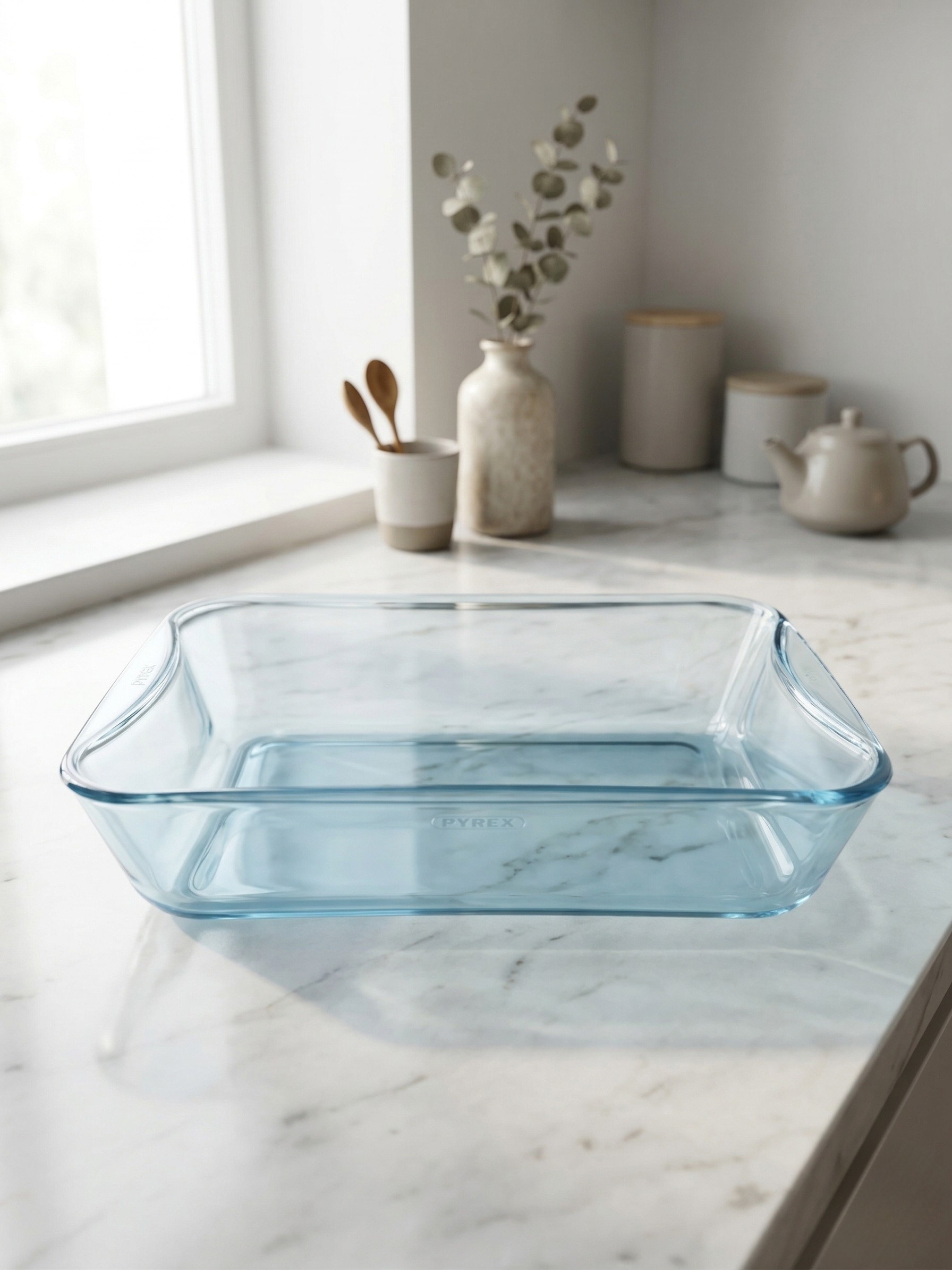 A durable and versatile Wave Rectangular Pyrex Tajin featuring a clear, heat-resistant glass body and subtle curved lines—perfect for roasting, baking, or serving your favorite meals with a clean, professional touch.